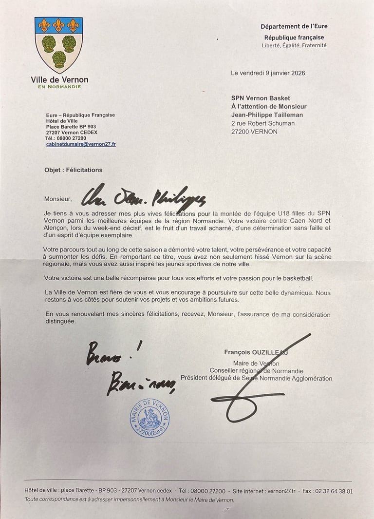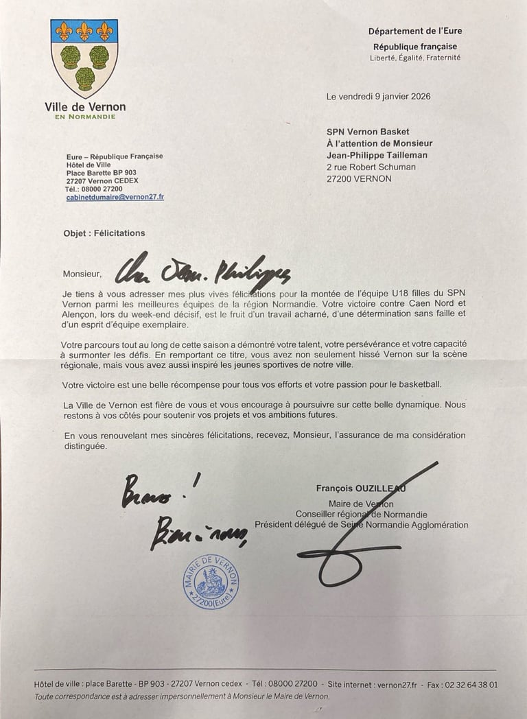 L'équipe U-18 FILLES REGION FELICITÉE PAR LA MAIRIE DE VERNON !
