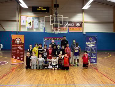 "Section mini basket qui continue à progresser avec 26 enfants à l'entraînement. L'objectif est de développer les fondamentaux individuels et collectifs tout en ayant un regard attentif sur la coordination du joueur. En fin de saison, la participation à des tournois sont prévu."
