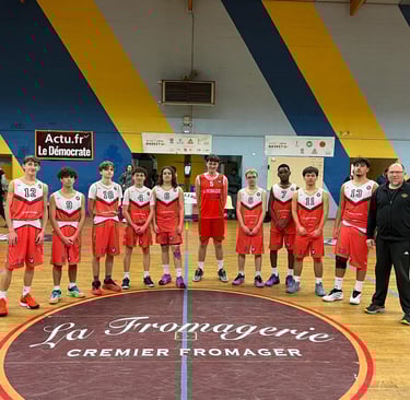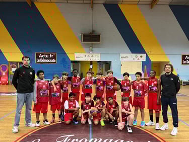 "Équipe U15 composée de 12 joueurs engagés en R2, dont 75 % de joueurs sont en première année u15 mais disposant déjà d’une première expérience régionale en u13. Le projet est avant tout formateur, axé sur le jeu rapide, la prise d’initiatives, la confiance en soi, le développement des fondamentaux et une cohésion de groupe forte fondée sur le respect et l’exigence. Une attention particulière est portée à la progression athlétique (endurance, intensité, répétition des efforts) et à l’installation d’une mentalité de domination et de gagne. L’objectif sportif prioritaire est le maintien en U15 Région, tout en construisant un noyau solide et ambitieux capable d’aller chercher l’accession en R1 la saison suivante. Coach Blanchard."